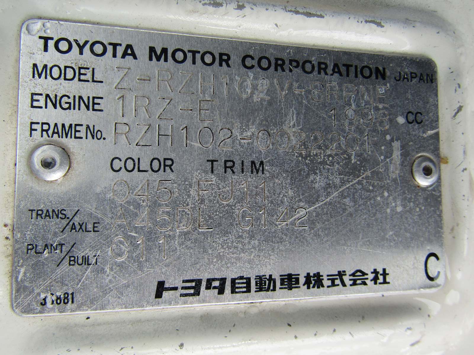 Chassis # | RZH102-0022201 | Couleur ext. | Blanc |